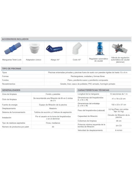 + Equipado con una válvula reguladora de Caudal: Controla Automáticamente el exceso de flujo a través del limpiafondos para un mejor rendimiento y longevidad